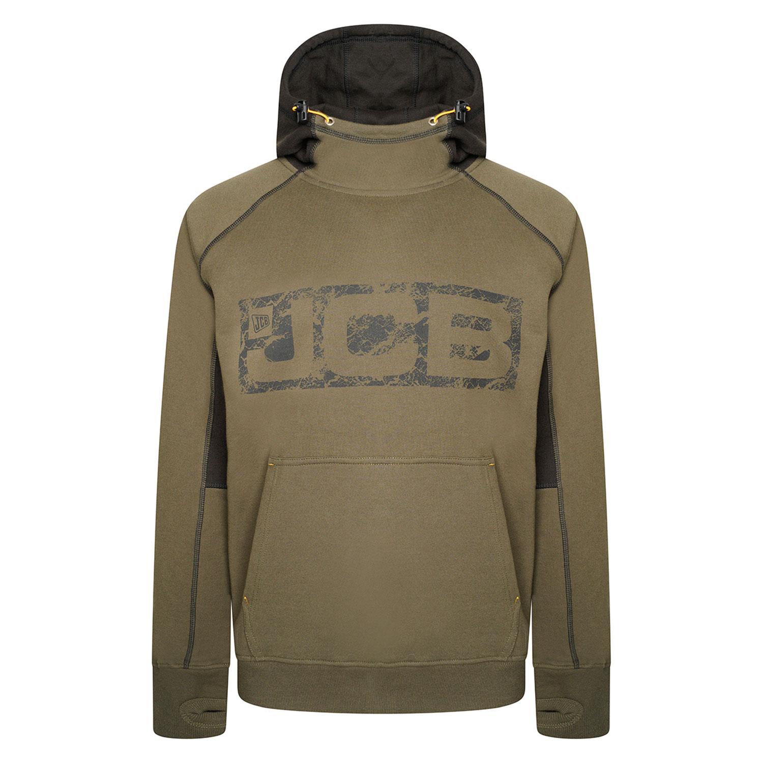 The JCB best selling hoodie: the Horton Hoodie. Made from heavyweight cotton rich fabric, with a front kangaroo style pouch pocket and thumb grips sewn into the cuffs for comfort when stretching. Lined snood style hood with drawstring for added warmth.