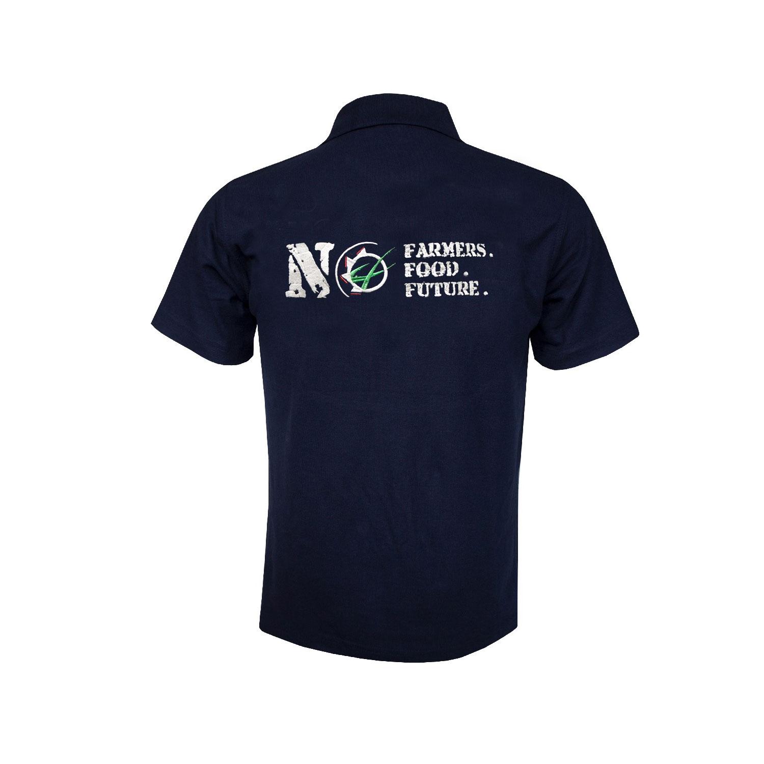 NO FARMERS. NO FOOD. NO FUTURE. logo is embroidered on the back. The polo shirt also features a button fastening, ribbed collar and cuffs and is made from polyester and cotton.