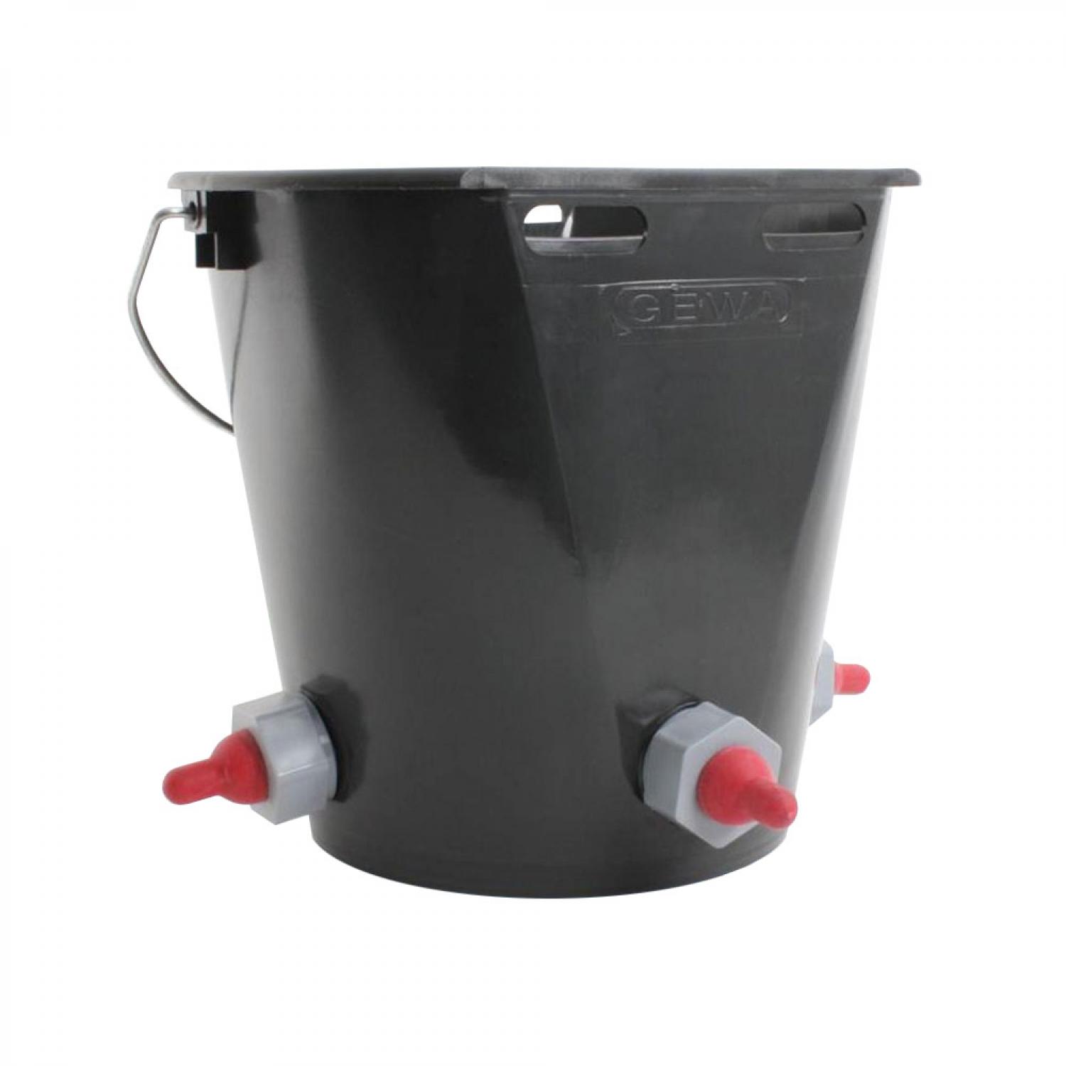 Gewa 8ltr suckling bucket comes complete with 3 lamb teats, 3 valves and handy holder plate. Suitable for food use, cadmium-free and acid resistant.