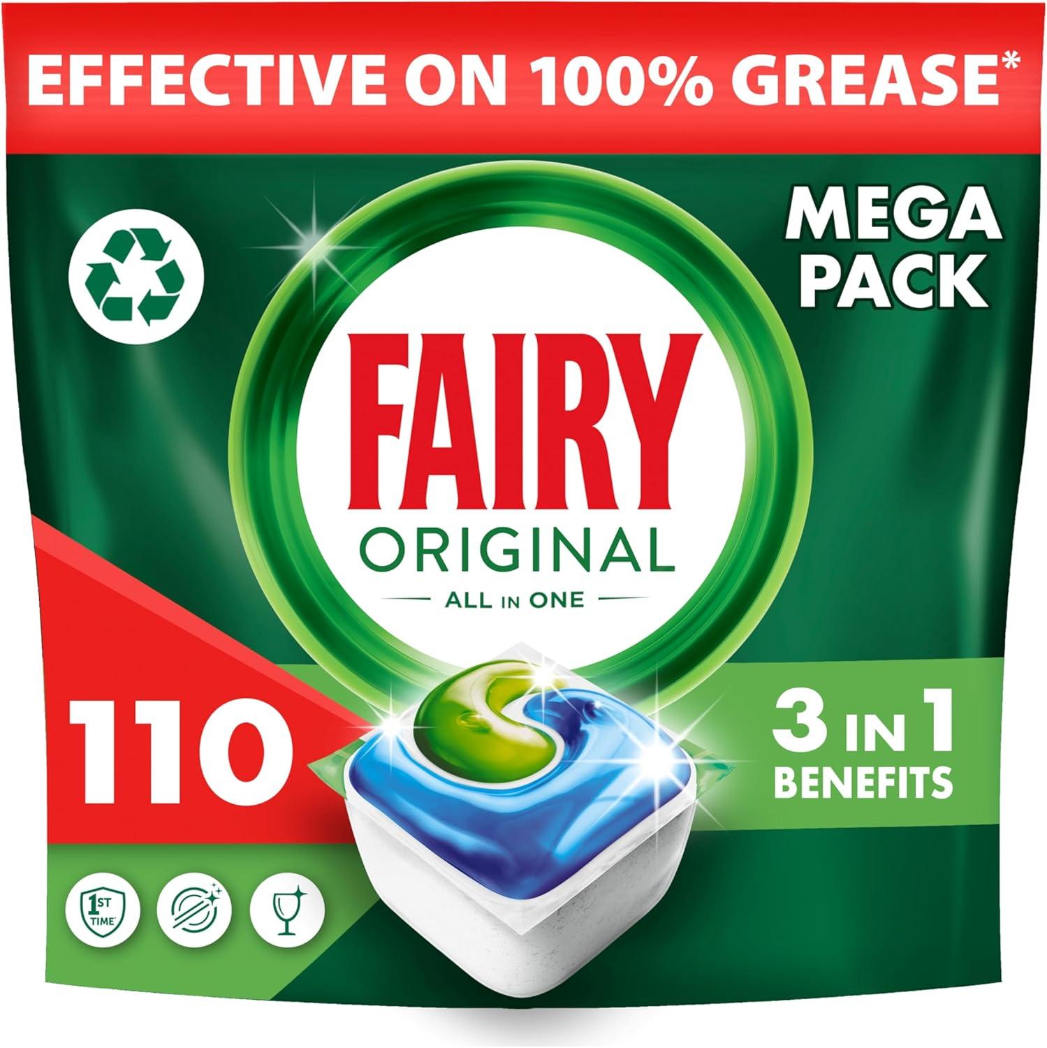 EFFECTIVE CLEANING: Fairy Original dishwasher tablets deliver 1st time cleaning action and are effective even on dried-on grease.