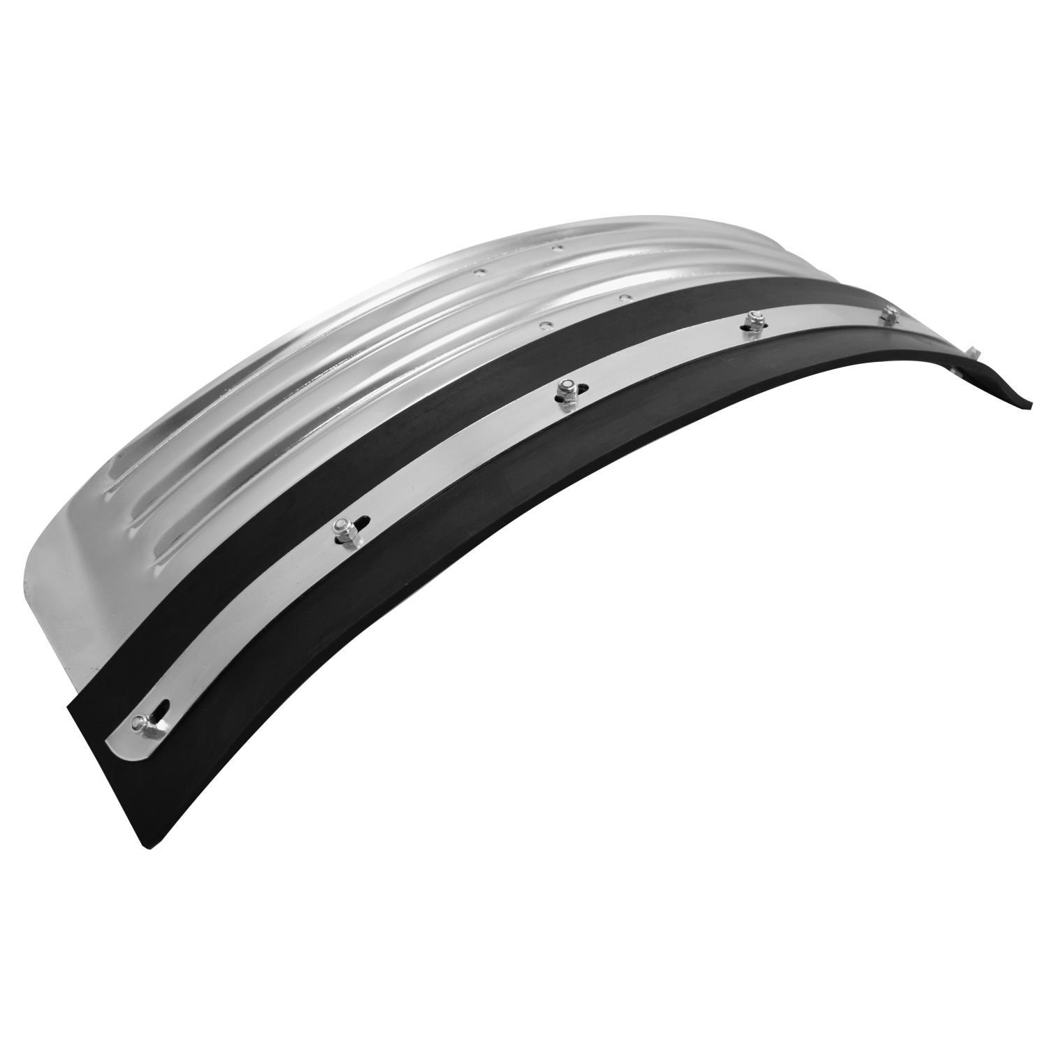 Galvanised yard scraper fitted with a 22" rubber held on by 6 small bolts. Curved for easier access to awkwards areas. Handle (not included) can be easily attached.