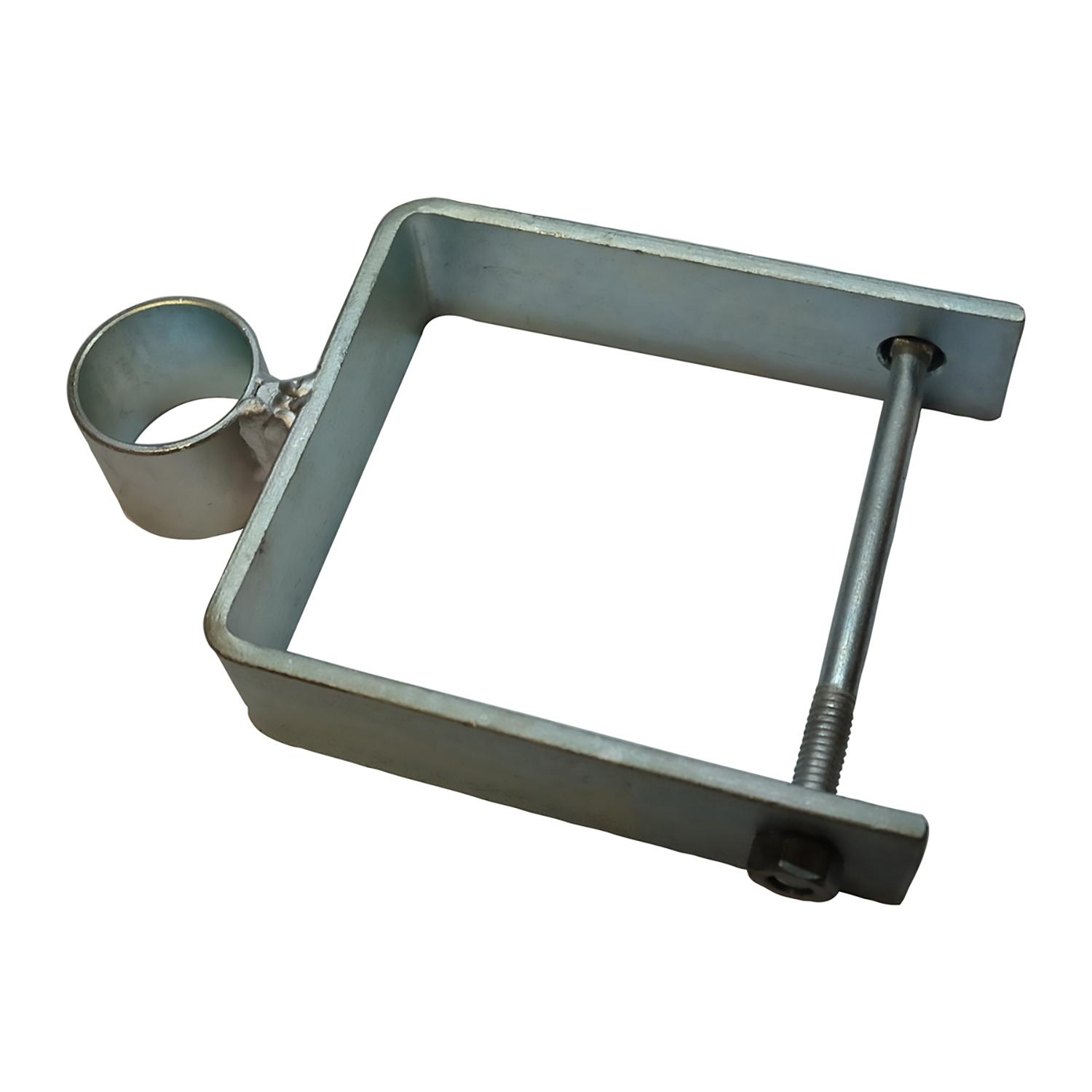 Galvanised open eye, centre hanging top bracket. For use with square concrete posts.